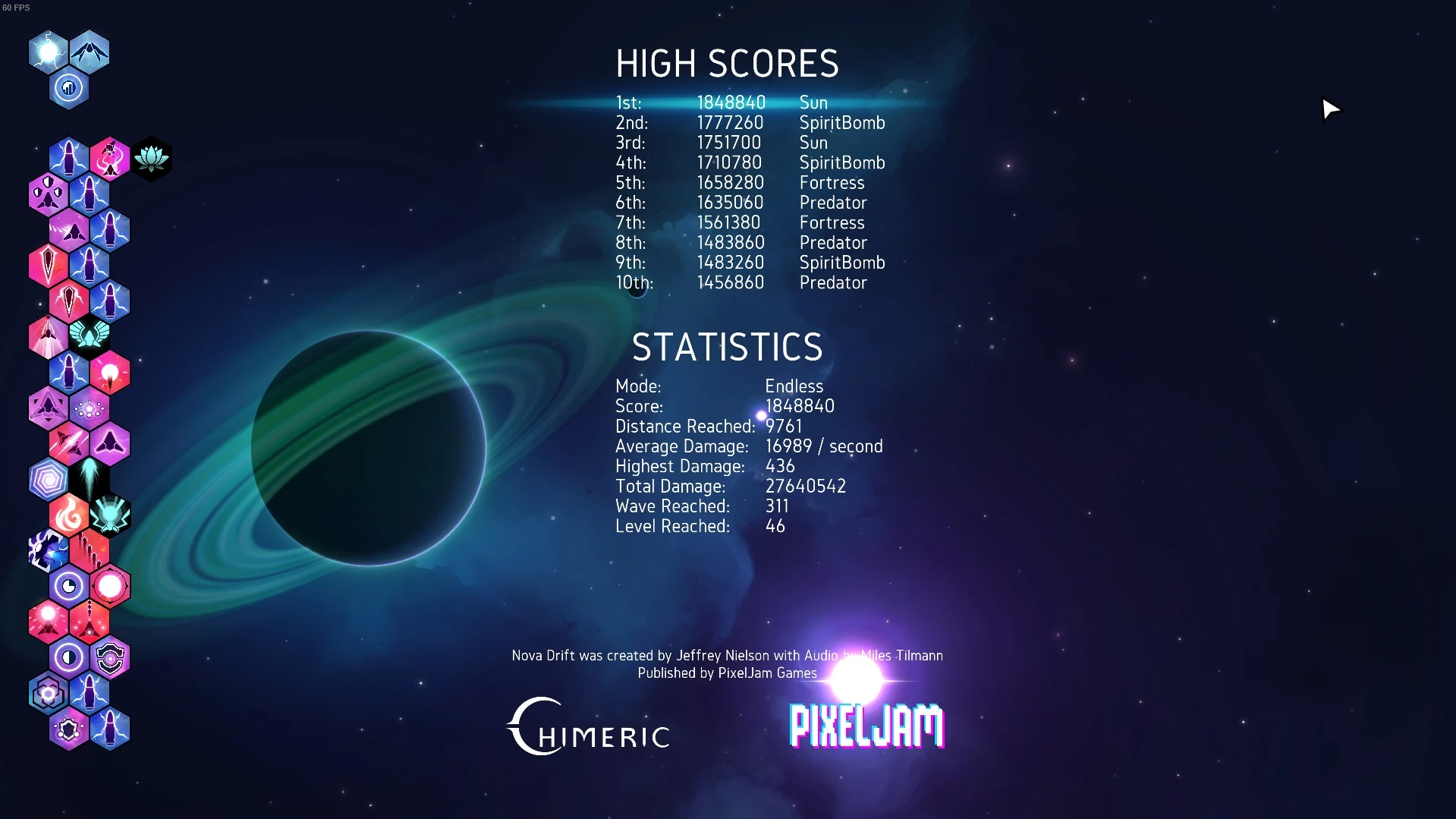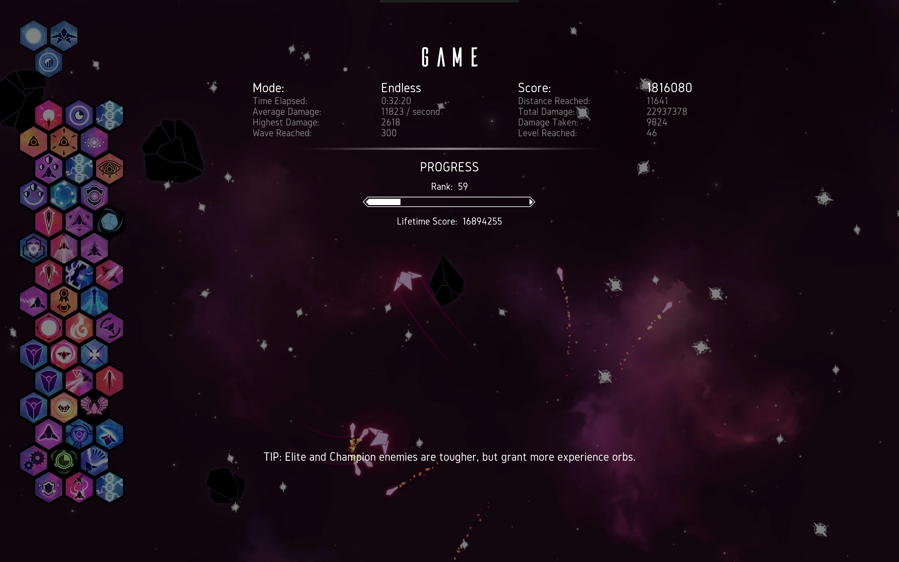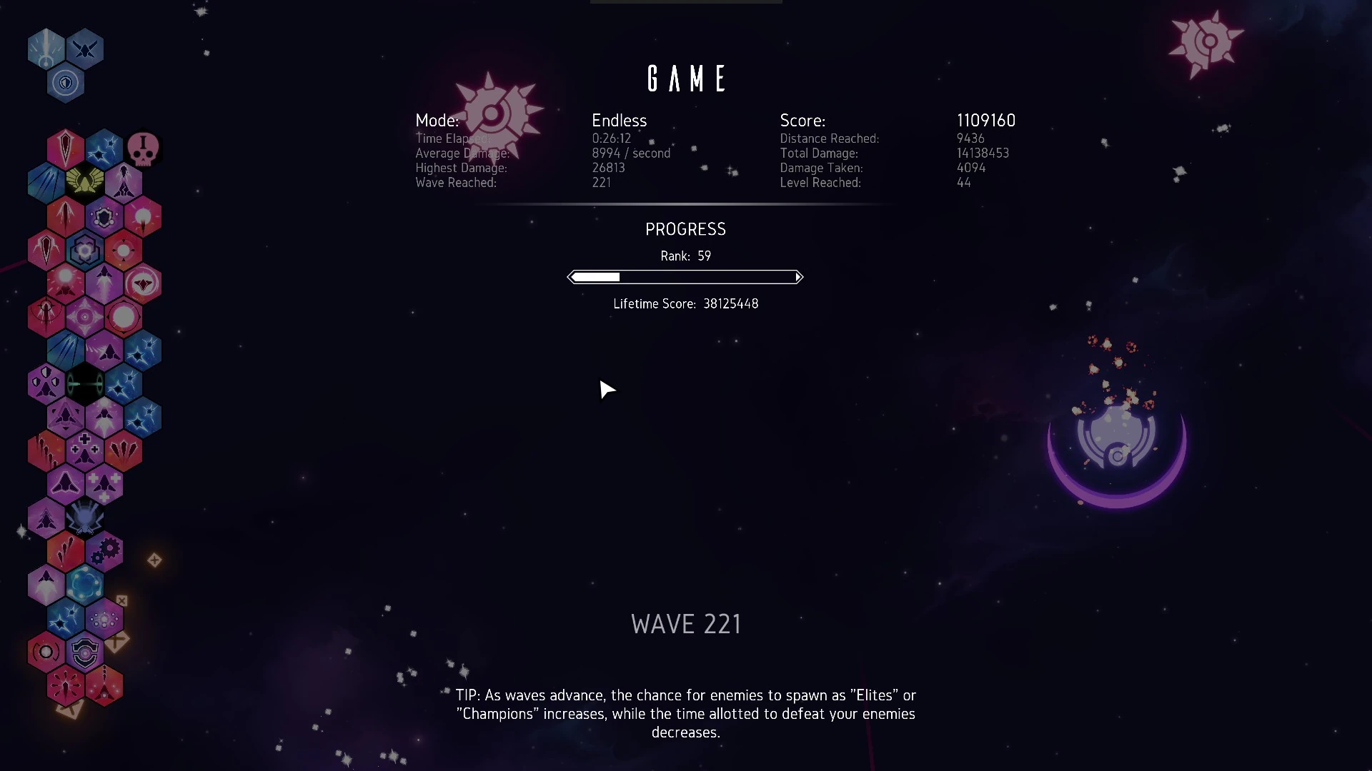 - A screenshot of the Endgame Score Board of one run to add to the Highscores section and to fill all the other fields.