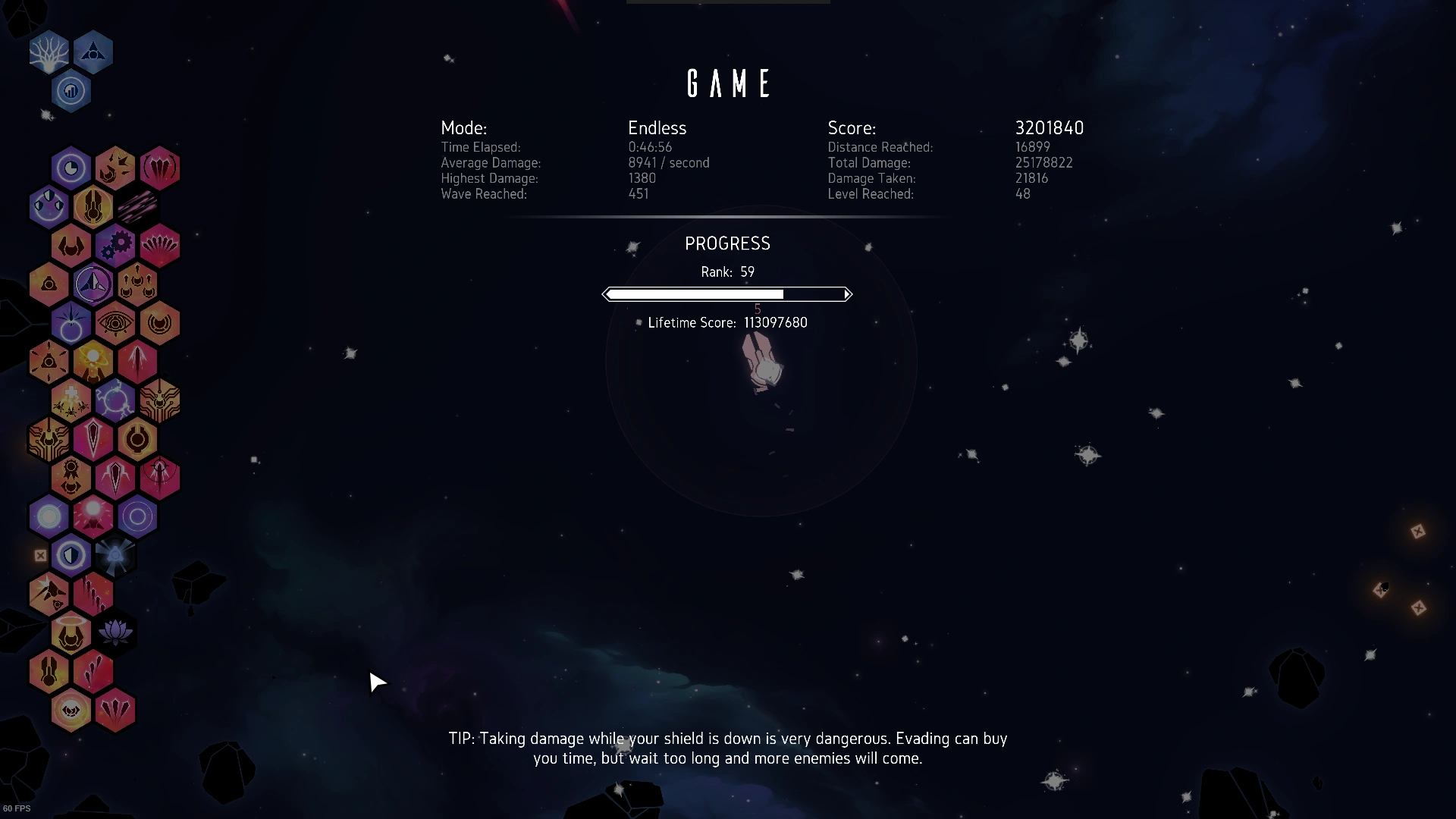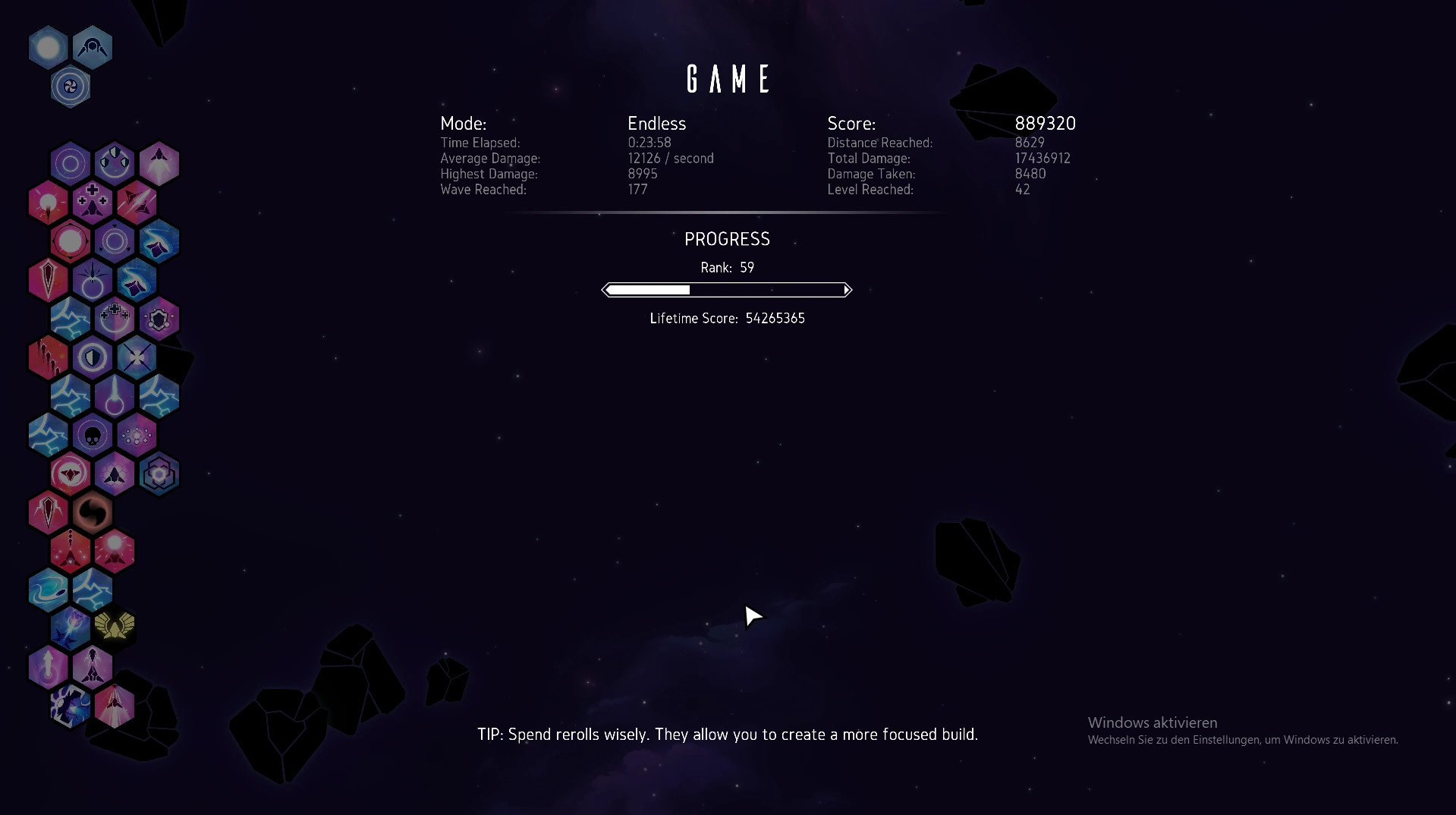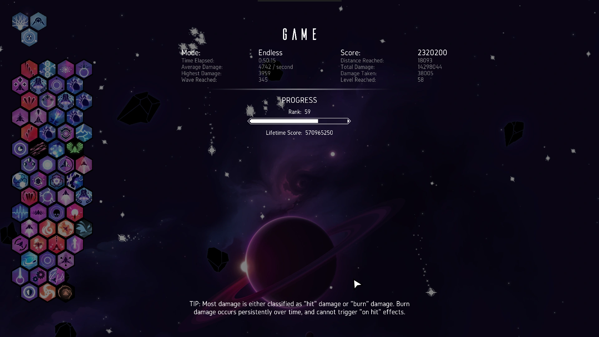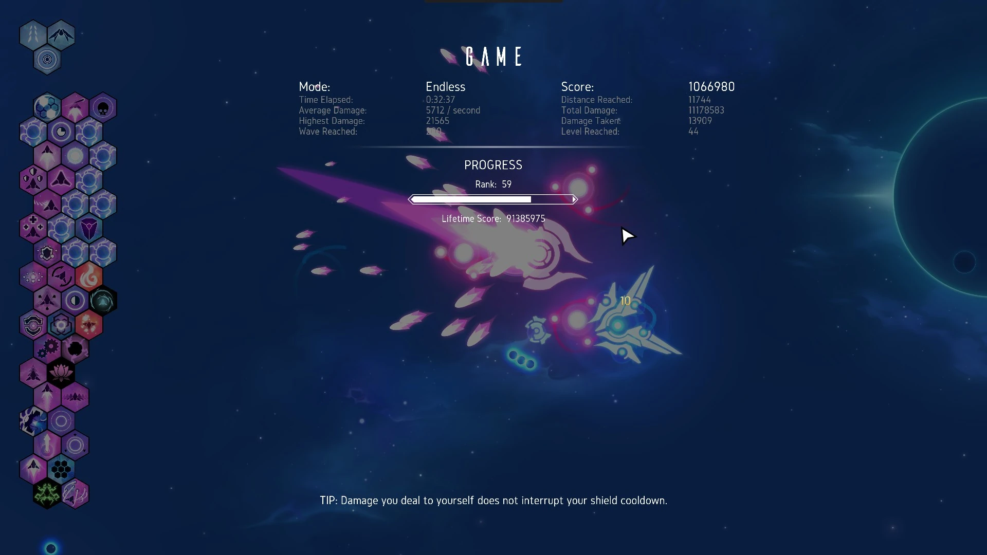 - A screenshot of the Endgame Score Board of one run to add to the Highscores section and to fill all the other fields.