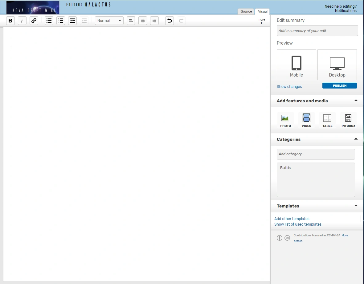 - ❺ - Once you're done editing the required informations you're good to go, publish! The required images will obviously need to be uploaded separately on the wiki.